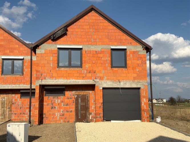 Dom o powierzchni całkowitej 141 m² (124,1 m² powierzchni użytkowej + garaż w bryle budynku 16,9m²) i sprzedawany jest obecnie w stanie surowym zamkniętym.