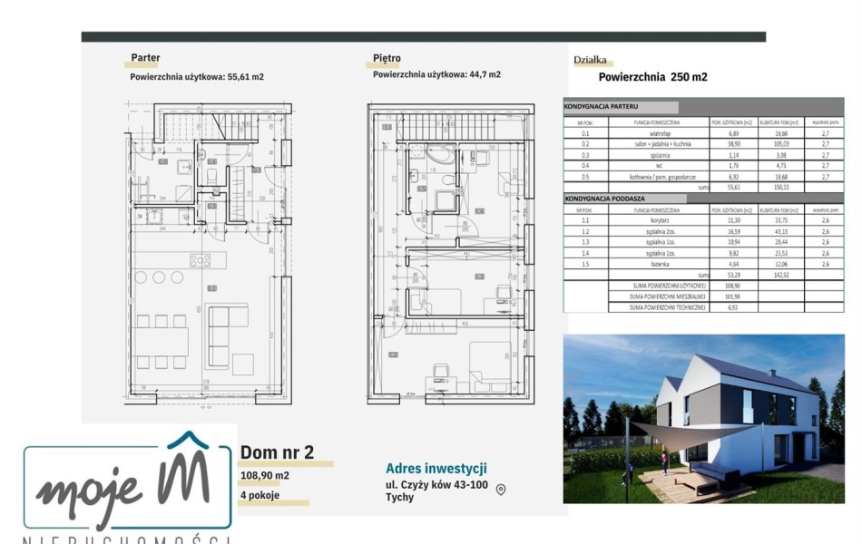 TYCHY CZYŻYKÓW to kameralny projekt obejmujący 2 nowoczesne domy w zabudowie bliźniaczej, zaprojektowane z myślą o komforcie, estetyce i funkcjonalności.