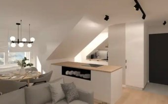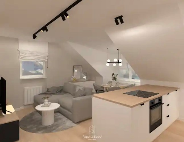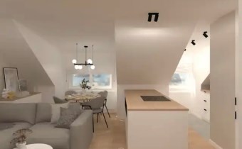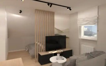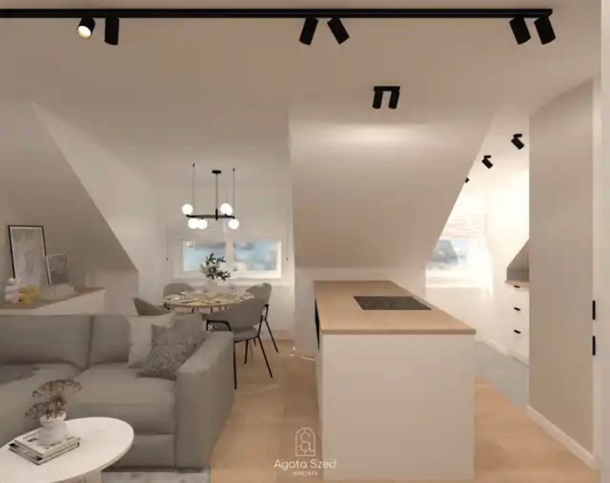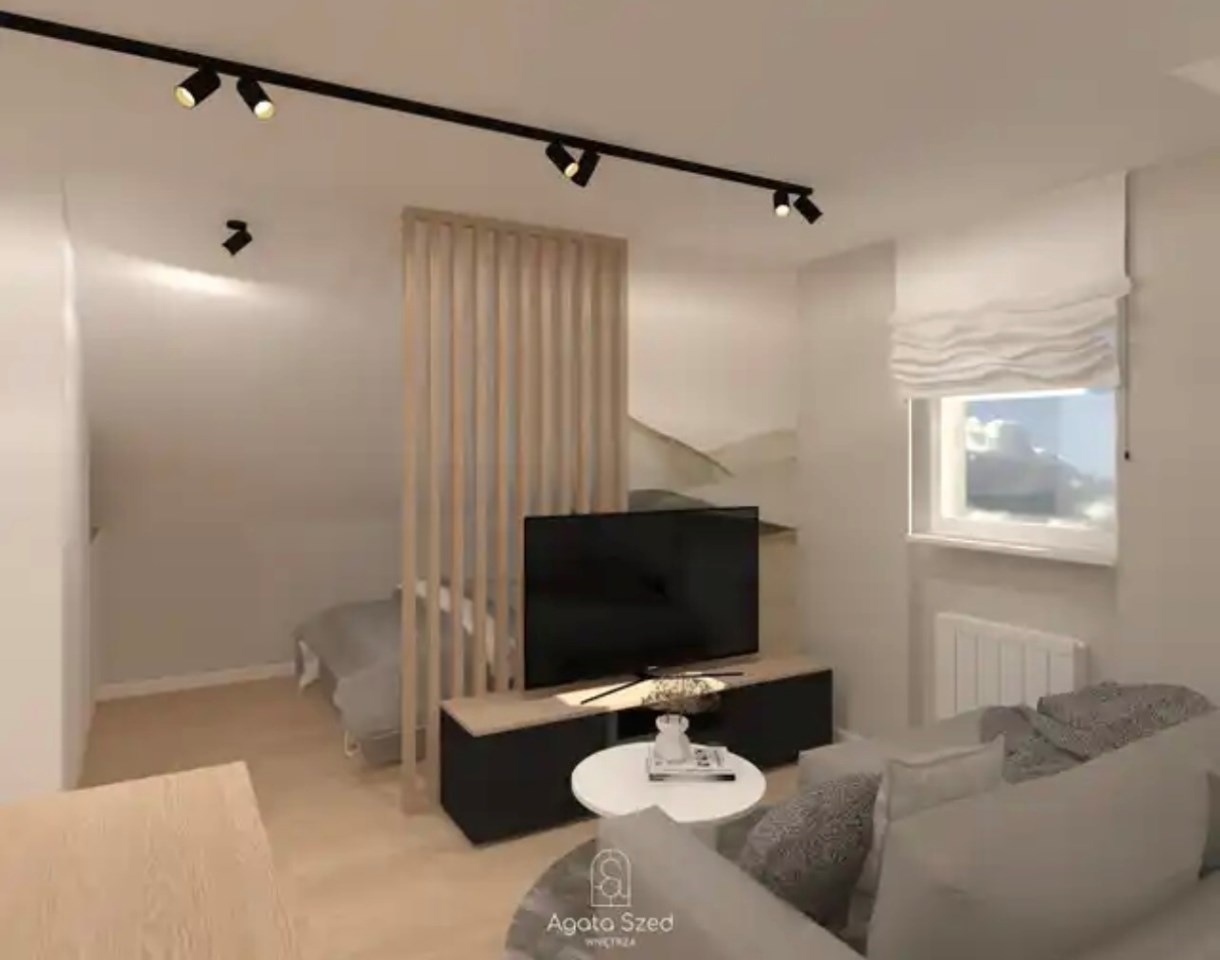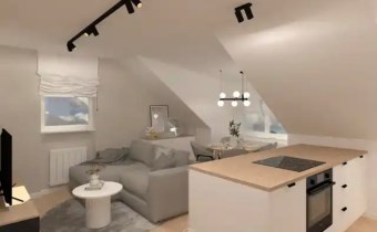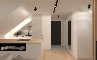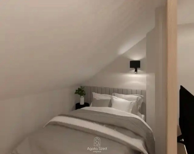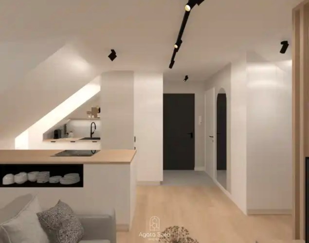 Dwupokojowe mieszkanie o powierzchni użytkowej 29,50 m², położone na 4. piętrze budynku – ostatnim piętrze ze skosami. Skosy obecne w całym mieszkaniu tworzą niepowtarzalny klimat wnętrza i stanowią ciekawy punkt wyjścia do zaprojektowania funkcjonalnej, nowoczesnej przestrzeni.