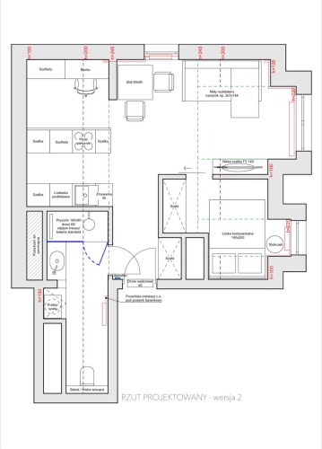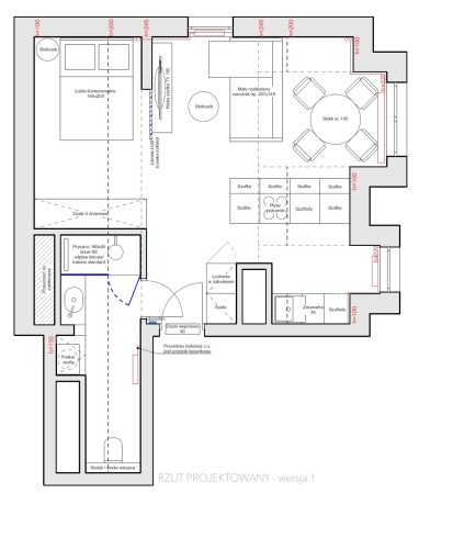 połączenia kuchni z jednym z pokoi i stworzenia komfortowej strefy dziennej,
