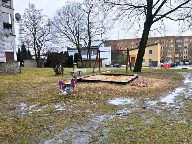 Teren wokół bloku jest zagospodarowany i zadbany, z dojściami pieszymi oraz ogólnodostępnymi miejscami parkingowymi dla mieszkańców. Wejście do budynku zabezpieczone jest sprawnym domofonem, co zwiększa komfort i poczucie bezpieczeństwa. Klatka schodowa jest utrzymana w dobrym stanie, co świadczy o dbałości o części wspólne i sprzyja przyjaznej atmosferze w budynku.