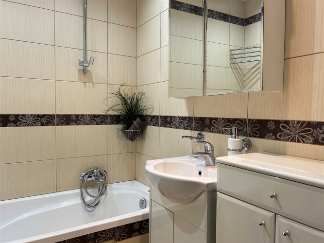 Powierzchnia użytkowa mieszkania to 51m2, na którą składają się dwa rozkładowe usytuowane na wschód i zachód bardzo ustawne pokoje. Duża kuchnia zabudowana jest meblami na wymiar wraz z AGD. Łazienka i wc osobno wykafelkowane glazurą w przyjemnej jasnej kolorystyce. Przedpokój zabudowany spora szafą.