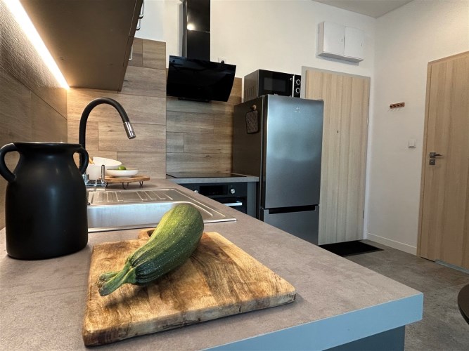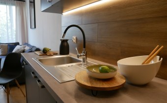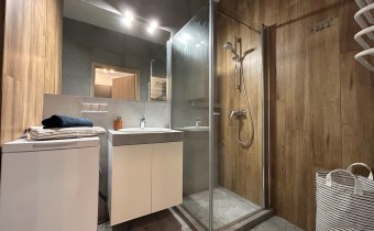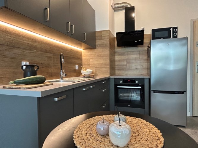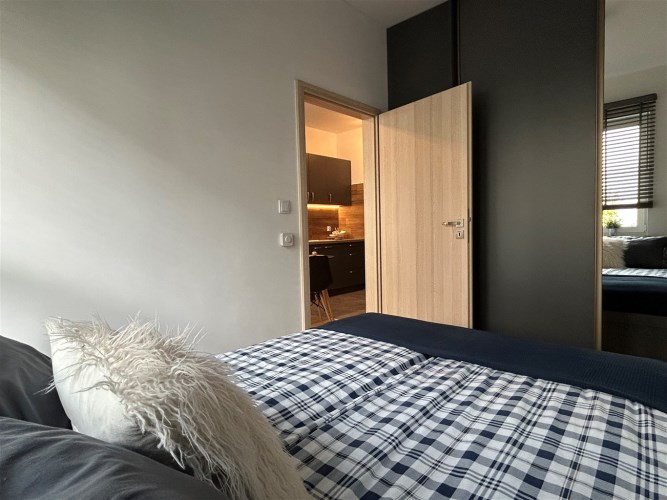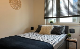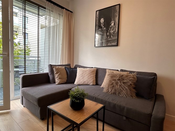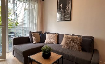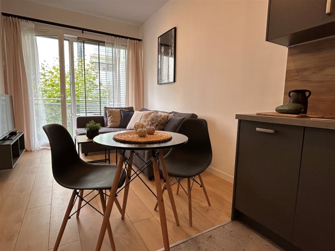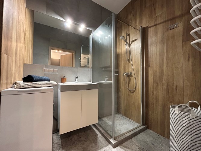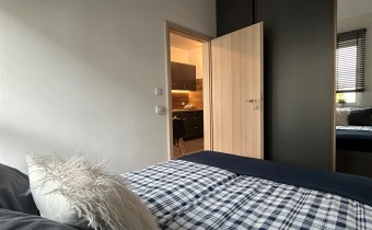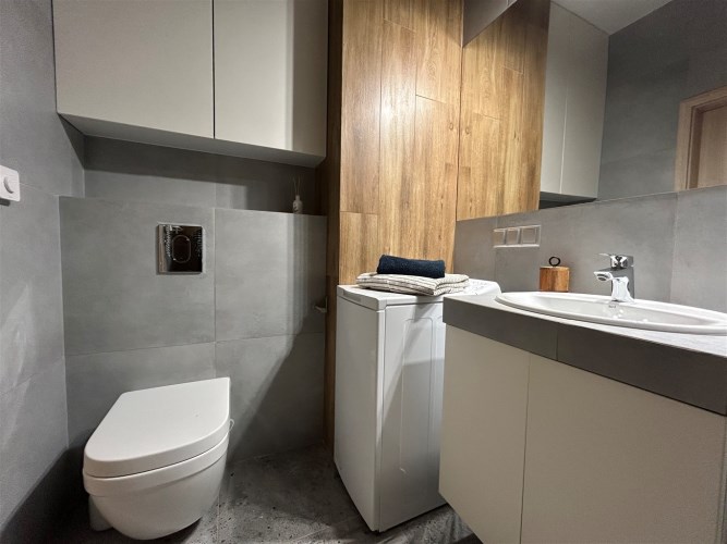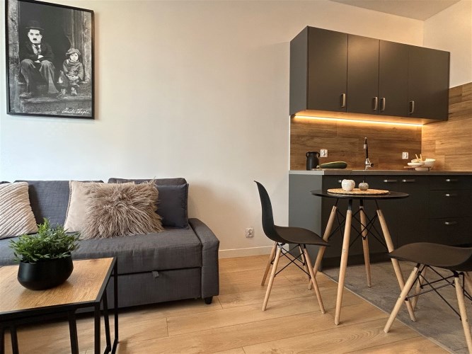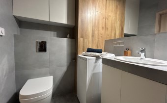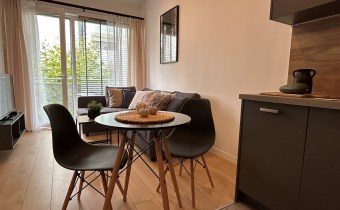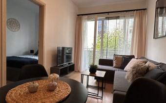 Mieszkanie posiada przyjemnie urządzony pokój dzienny z aneksem kuchennym w pełni wyposażonym, sypialnię z dużym łóżkiem i sporą szafą. Łazienka razem z wc oraz wygodną w użytkowaniu strefą prysznica.